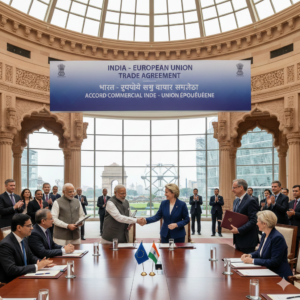 ಭಾರತದ ಪ್ರಧಾನಿ ನರೇಂದ್ರ ಮೋದಿ ಮತ್ತು ಯುರೋಪ್ ಒಕ್ಕೂಟದ ಮುಖ್ಯಸ್ಥ ಉರ್ಸುಲ ವಡರ್ ಲಿಯೇನ್ ಮುಕ್ತ ವ್ಯಾಪಾರ ಒಪ್ಪಂದಕ್ಕೆ ಜನವರಿ 26ರಂದು 2026 ರಂದು ಜಾರಿಗೊಳಿಸಲಾಯಿತು. ಅಂತಿಮ ಅಂಕಿತವನ್ನು ಹಾಕಿದರು